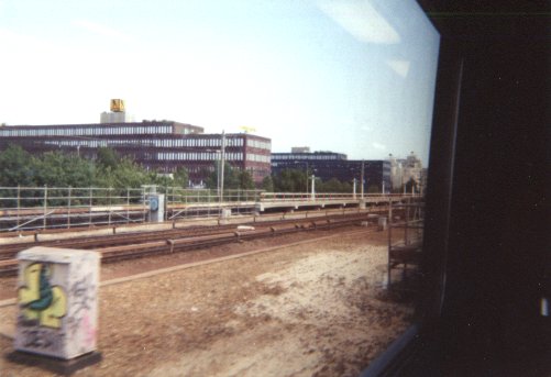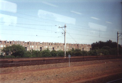 Duivendrecht lies somewhere between Utrecht and Amsterdam, from the train passenger's point of view. It really is little more than a train station with some extremely dreary apartment blocks around it. Its main draw is something called the Ajax Stadion, which all football fans seem to know about but which I, not being a football fan, managed to completely oversee despite its prominent logo. The station has several floors, so one has to run up and down stairs to find one's platform. It also has a "metro" (the Dutch Underground, although most of it doesn't run underground) track, and very much the steel-painted-in-primary-colours metro station look.