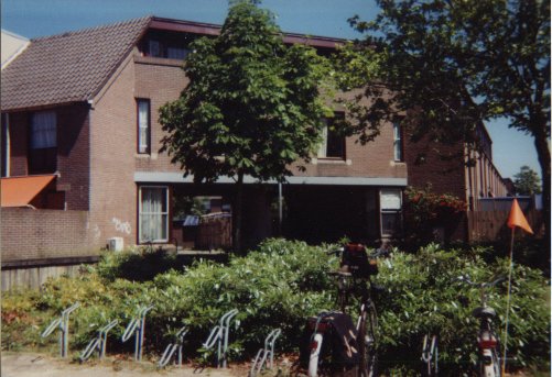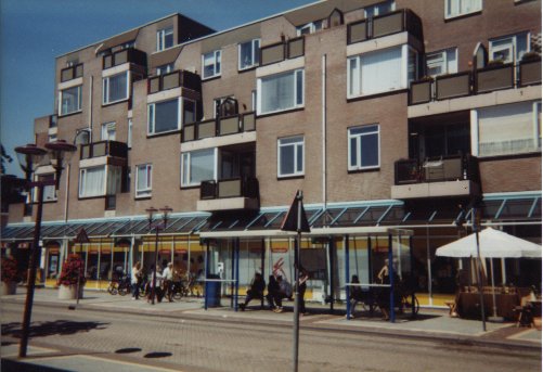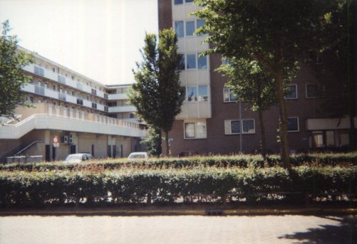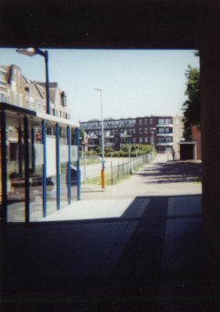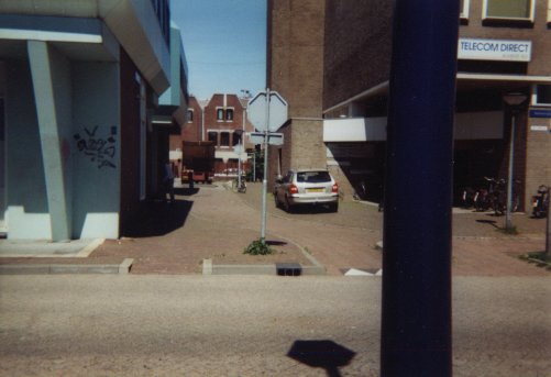 "Haven" means "port", but there's nothing in this place to justify that name except a proximity to water. I spent a few months in a neighbourhood called "De Werven" ("The Docks" - again, you won't find any) and found that in its own suburban way, it was as insane as Almere Stad. There is an obvious deliberate pattern of design that runs through the whole area - interconnecting houses, diamond-shaped raised flowerbeds - that create an impression of living in a giant beehive. The bus line - identified by a colour - runs from point A to point B ("de Werven") by one route, but returns by another, making it very easy to take the wrong bus, wait at the wrong stop, and end up in a totally unfamiliar place - despite the sameness that runs through the whole neighbourhood, slight discrepancies tell me that this is not the section of neighbourhood I should be in, it's as if the fabric of reality has shifted a bit, and in all I feel more lost than if every street had looked totally different. This neighbourhood can be roughly separated into isolated buildings, shopping centre and suburban sprawl. To reflect the chaotic feel of the place, I spun around snapping pictures left and right, a number of which were only half usable because the actual subject of the photograph was shifted way off centre.