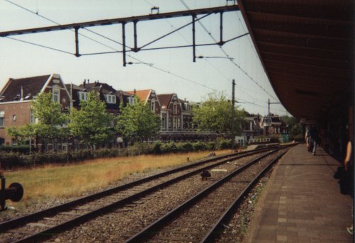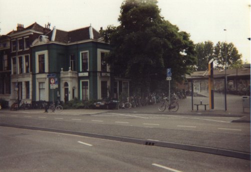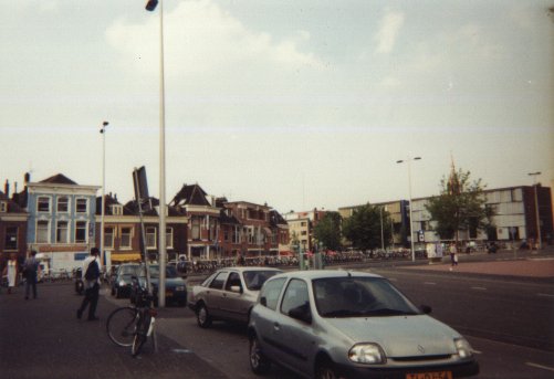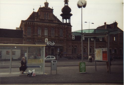 To tourists, Delft is known as the historical origin of the porcelainware known as "Delfts blauw", reputedly of such quality that it gave rise to the expression "true blue". To me, it's just another grotty little town with a few beautiful old buildings and a lot of ugly new ones that I passed through on my way to work at a company with the much-punned-on name "Exact"; one with, I've understood from people living there, a reputation for street violence and general unpleasantness. But that's a reputation only few Dutch towns don't have. Coming out of the station to catch the bus, I used to spin on my heels for a panoramic view of the buildings around it, two of which were painted in a curious chalky tone. Some time later, I performed the same spin, with camera in hand.