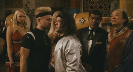 The film ridicules not only American but all sorts of stereotypes, like the Chinese wise old man. Here, Randy's mentor (who is blind, hence his other senses are enhanced) thinks he's putting down an uppity rival.