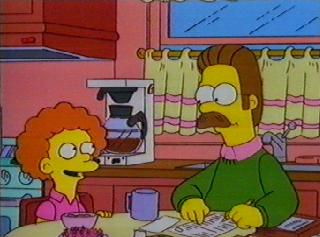 Ned Flanders, filling in his tax form right on time on the first of January, and