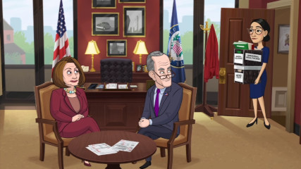 Season 3, episode 16: make fun of the one stupid person in the room, and Americans will demand that everyone else be made fun of too, for "balance". As a result, the series parodies all politicians equally, grossly exaggerating the "lefties" while only scratching the surface for the wingnuts. Hear cartoon Alexandria Ocasio-Cortez's plans for the Democrat future, and keep in mind that the real AOC doesn't actually want to kill anyone, even though she regularly receives credible death threats.