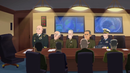 Season 1, episode 1: after cartoon Trump has stomped off because his generals wouldn't even let him start a nuclear war to increase his poll numbers (bear in mind Trump actually tried this with North Korea), their reactions serve to remind that the events of January 6, 2021 were something anyone could have seen coming.