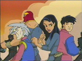 While the animated Jackie Chan gazes fearfully upon the dreaded Black Ninjas,