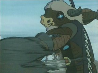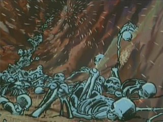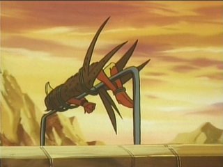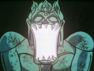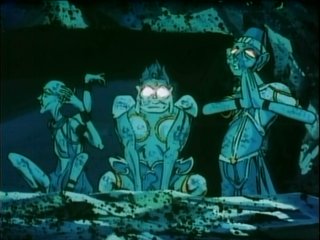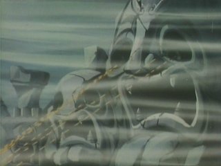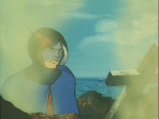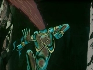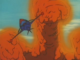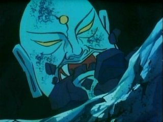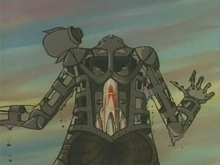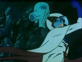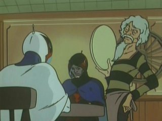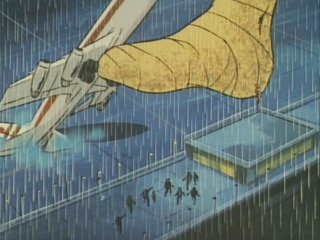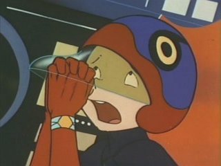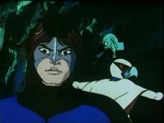 And by icons I don't in fact mean the little things a computer user clicks on; I mean images that, however inaccurate, are recognizably referring to a religion, or something with religious content. Gatchaman isn't a very religious show, either in the sense of borrowing the outer trappings, like Haunted Junction or Neon Genesis Evangelion, or touching on the essence, as in Wings of Honneamise where an initially lazy recruit is affected by the entirely invented religion he comes in contact with. Although Jinpei utters the occasional kami-sama with folded hands in an emergency, whatever the Science Ninjas turn to when life overwhelms them, it's not any form of god. Instead, the beliefs of this world helped inspire Galactor plots and mechas, at least, in the first series when Galactor was still in touch with pop culture; in the second series, the organization changed from bizarre to truly bizarre, and in the third series, well, I'm still repressing.