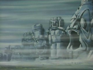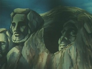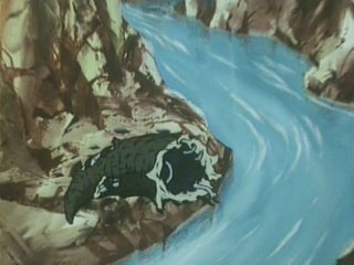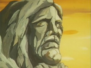 Where do Galactors get their mecha ideas... An artist is commissioned to hack the likeness of Christ into a mountainside. Galactor hastily appropriates this face for a new mecha. Because the only place to hide a mecha this big is inside this mountain, or the head makes a good lookout post? Or something? Galactor logic makes my brain hurt.