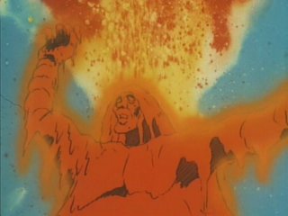 Death strikes again, this time for keeps, as the mummy mecha is destroyed by precisely the chemical substance Galactor wanted to get hold of in the first place.