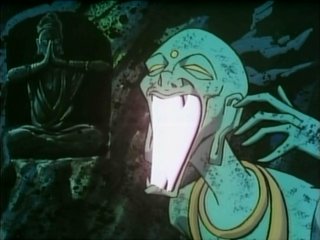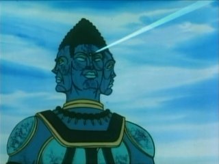 In ep 58, the team are up against a four-faced marching monster called "Mecha-Buddha". Such inaccuracy. Buddha did not have four faces, but Brahma (reputedly on speaking terms with Buddha, see above) did. He was the main god of the leading trinity of the Hindu pantheon, consisting of Brahma the Creator, Shiva (who had four arms) the Destroyer, and Vishnu the Preserver who reincarnated on earth in ten forms, the Avatars. Together they stood for Brahman, the omnipresent cosmic force.