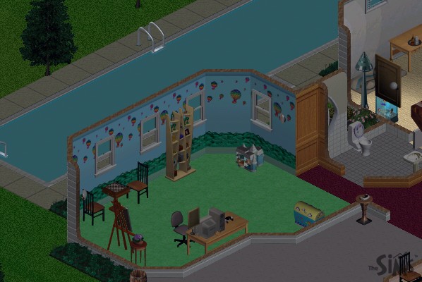 On the ground floor again, a small library with a piano and a playroom with a computer. And, outside, their very own swimming pool!