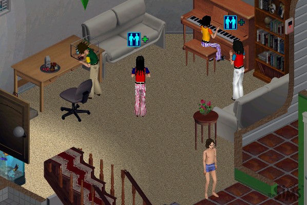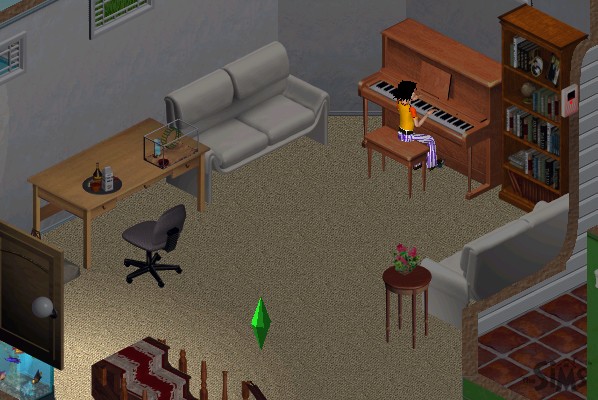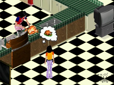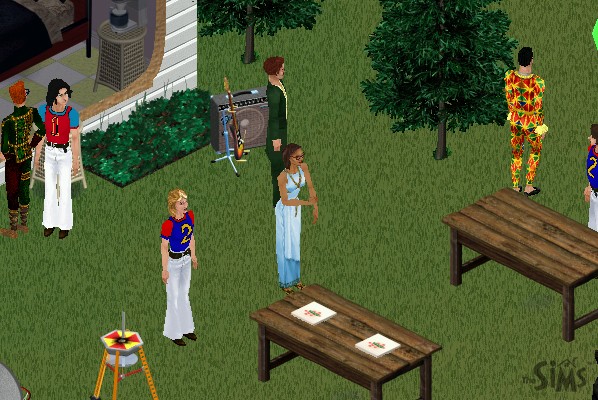 After the Sims-based format of last theme page, this one takes the shape of a Sims album. One of the extras promised to buyers of the Sims was webspace on which to publish their families and "albums", collections of snapshots taken inside the game with added descriptions. Every one of these snapshots was marked with the Sims logo, and there were so many hitches in the family-publishing system that a number of fans forwent the privilege and published their own albums of game snapshots, doctored or not, sometimes logo-less, on their own webpages.