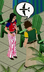 He's soon joined by his family and other tourists who like to roast marshmallows. "Nice to see you folks enjoying yourself," the resort mascot says. "Not much tourism lately - there's been some strange weather." He (she?) looks out over the sea. "Yep, there's some funny goings-on out there."