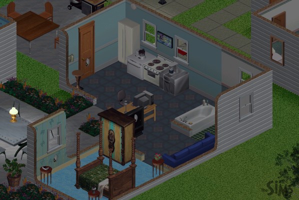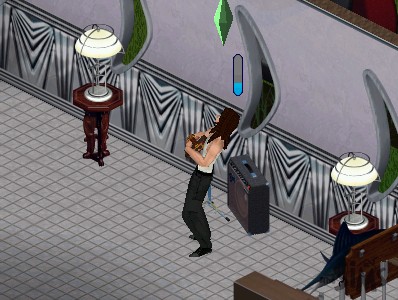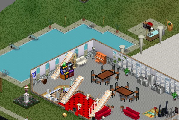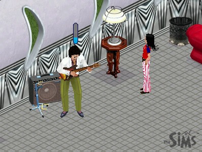 DN-5, the hippie rock group that made their biggest hit playing Spectran Murder Music - although not by choice - own a glamorous villa in Simsville, with plenty of room for parties and guests.