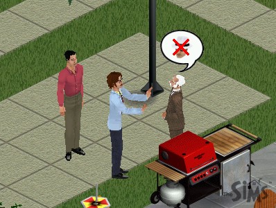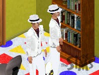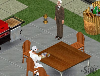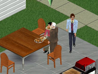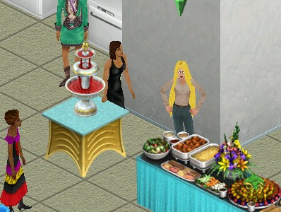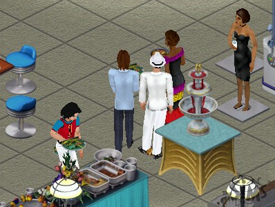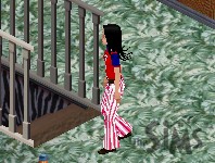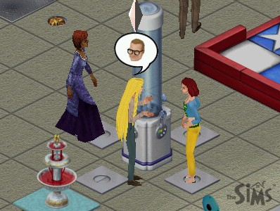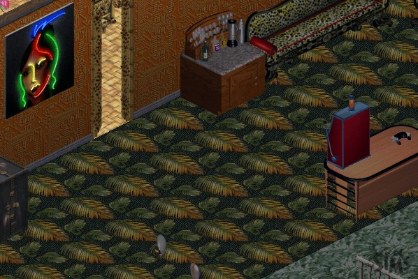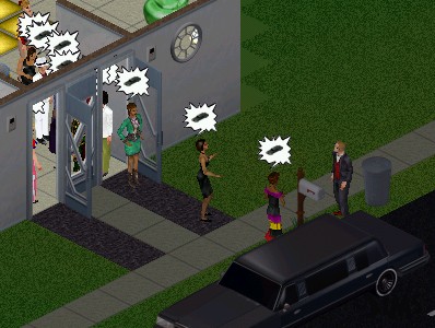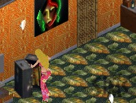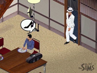 Joe - who, as has been said before, is not really a party type - is likewise satisfying his curiosity. "You've got a pretty cushy place upstairs, mister... uh... say, what's your name?" His host seems a bit agitated. "Oops, gotta go. Later!"