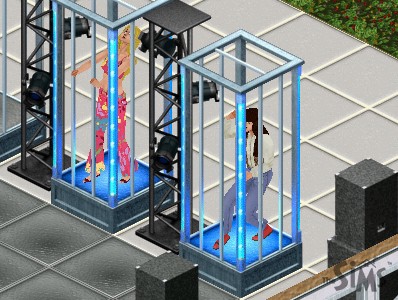"I know, let's go outside! We've had a great new dance floor installed. I'll put some music on." Hardly believing this is happening, Princess has a wild time in one of the dancing cages.