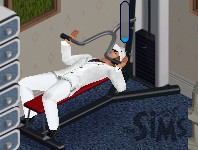 And here the man himself who in his study sits... Though sitting is for wussy wimps, so he's torturing himself on the workout machine.