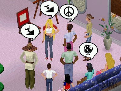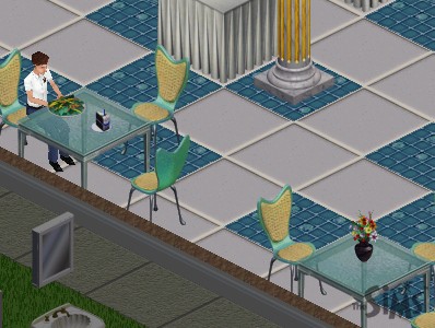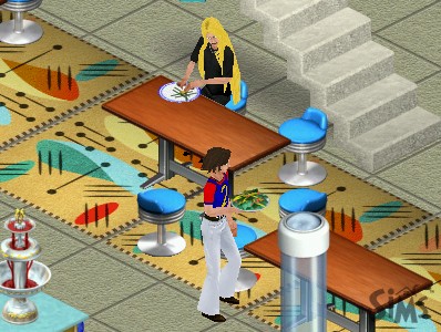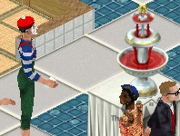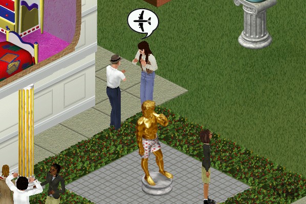 "It's really you - DN-5?" a visitor gasps. "Sure, as soon as we heard about the grand opening we flew here in our private jet" says the band member who never takes his sunglasses off. Possiby victims of lazy animators, two near-identical women hang around the entrance, watch the arrival of the famous rock band and talk excitedly to their friends. "So they didn't split up after all?"
