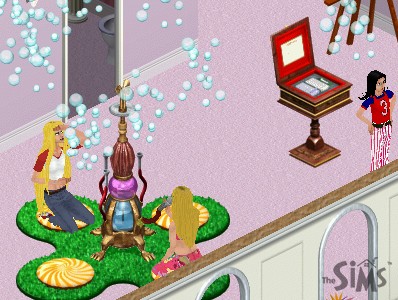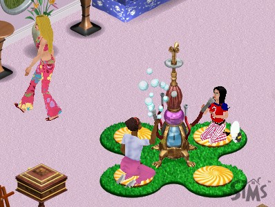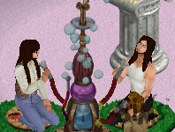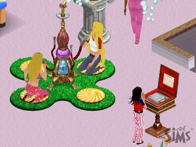 Princess would like to try the waterpipe too, but feels a bit shy. Noticing this, Mrs Host kindly invites her to blow some bubbles together.