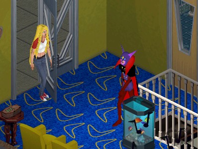 "Stick around, it's not often I get visitors before sundown. What do you like, pool? Football? I play a mean game of football." So does Joe. For the first time since the move to Simsville, he feels a teensy bit less bored.