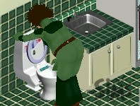 He even braves that unknown and restricted area: the ladies'. Nope, no one there.