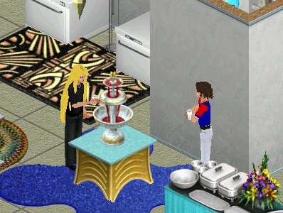 "Why hello little girl!" Jun says. "Aren't you bored with all the grownups here? No, liquor is not for little girls. Let's find something that's fun for children."