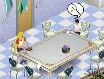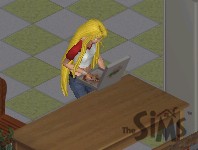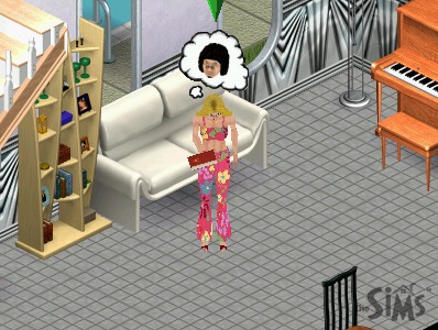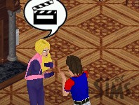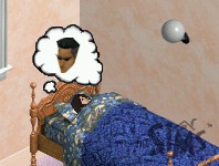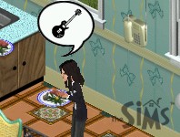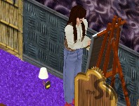 The singin' chick, on the other hand, just stares at a blank canvas. "Inspiration... I need inspiration."
