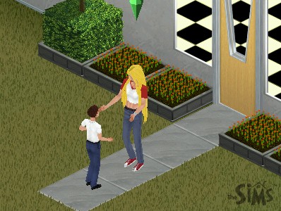 It's a beautiful day in the Simiverse. Mrs Wade waters the flowers, her little boy is off to school and the sun shines.