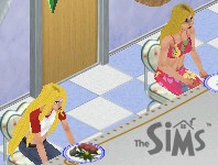 Remembering that morning's comment about junk food, he quickly grabs the bag of crisps lying around and stuffs it in the trash compactor. His brother doesn't notice, but grabs the plate that's waiting for him and wolfs down dinner.