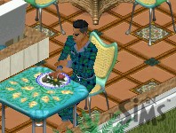 Joe remarks on the big plastic blue mirror, that he saw in the restaurant earlier and, before that, at the party palace itself.