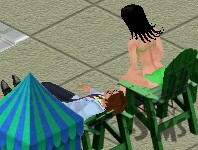 Spotting them while about to relax in one of the recliners, Joe is struck by the bizarre nature of the situation. The doc in his suit sleeping in a chair by the pool, just a few yards away from a Katze lookalike in a Gatchaman ripoff T-shirt. You can't make this stuff up.