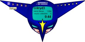 This is an MP3/Ogg Vorbis/audio-CD player with the very (to skinners) convenient habit of displaying only as many functions as the skin supplies buttons for; one could perversely make a skin with no Exit button. ^_^ I found it hard to skin, compared with the programs above. Like most skinnable players it comes with a skinning howto and a program MAKETHEME.EXE to zip the skin files (the player can't read ordinary zipfiles); there is a Zinf skin editor called Boroskin, but its page appears to have gone. Pity, I could really have used it!