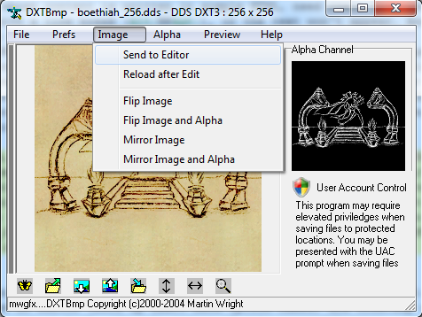 Not to do with modding itself, but handy when testing mods. Two keyboard shortcuts I found on Morrowind sites while surfing: if you want to take something out of your inventory of which you have more than one, for instance: 9 Cure Disease potions, holding down the Ctrl key while clicking on the item will pick up only one item and skip the usual question of how much to take, while holding down the Shift key picks up the whole lot without question. I also read that as long as you hold down the Ctrl key, the number of times you click on the item will be the number of items picked up, but that didn't quite work for me; Ctrl-click did pick up only one of a bunch of items, but Ctrl-click-click picked it up and put it back again. Ctrl-click-click-click picked it up, put it back and then picked it up again. I was never able to pick up more than one item this way.