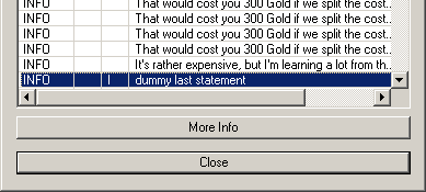 The images show that the first dummy line, having been moved, has now also been marked as changed. That's not the idea; the insertion point should always be unchanged. To clean this up, I open the plugin and look at Details: here, I can see the dummy lines inder INFO. I select them (this can be done per line or for multiple lines with Shift-Click or Ctrl-Click) and press Delete to set them to I(gnore). Then I click OK to close the Details screen and load the plugin, and save the plugin to get rid of the ignored lines. Now the plugin is clean.