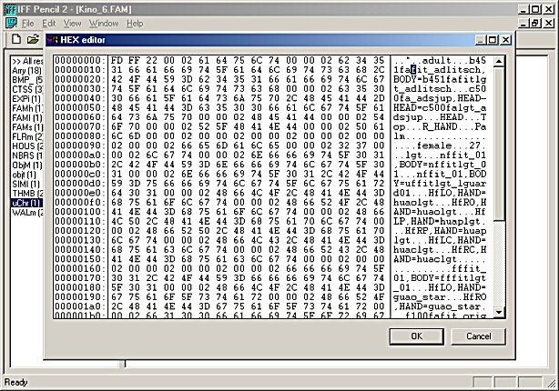 Finally, if you've got a FAM file with the standard body type that you'd like to alter, you can open the FAM in IFF Pencil and change the codes in the uChr block: