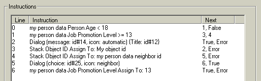 Now it's time to see to the pedestrian portal. I promised PersonGlobals a routine called "display military school dialog". Now it so happens that this dialog already exists: it's BHAV4115 and it goes like this: