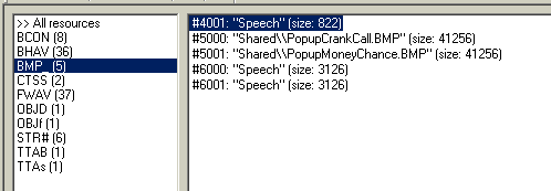 The screencap below shows resource BMP_#5001. This can be exported to a bitmap file.