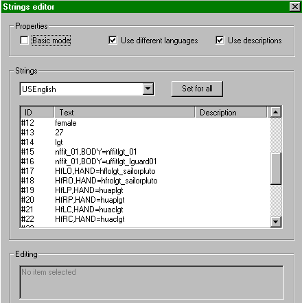 As with the age switch, a gender switch means the character needs a new bodystring, preferably before restarting the game. Fortunately, that's the subject of the next section.