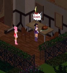 There are other object interactions that can be made available to children - entering the hot tub, carving the turkey - but as there are no animations to go with it, the result will be as if the action was carried out, but rather than visually interact with the object, the child will jump up and down with a "Missing animation" balloon over its head until the code has finished.