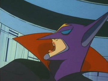 That didn't go very well, nope, nuh-uh... But as usual he escapes with a parting gloat: "So long, Gatchasuckers!" (ep 43)