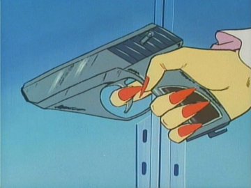 Three shots of declining artistic quality, the centre one seeming to support the theory that BK is indeed modelled on BB (Brigitte Bardot, a theory put forward by a fan called Brechje on the Gatchaman mailing list).