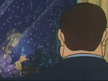 Off she rides into the snow, flipping up her collar to talk into the communicator bead hidden under it. And that is, sadly, the last worthwhile appearance she makes in the show; she only pops up two more times, and the second time (ep 102) she's almost unrecognizable.