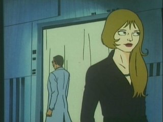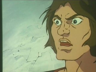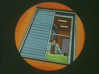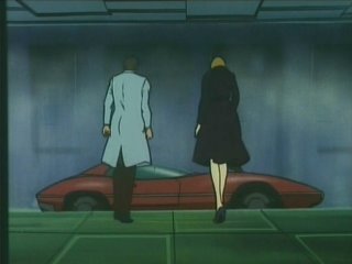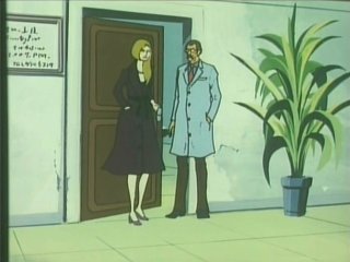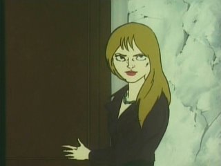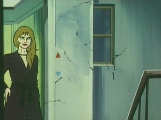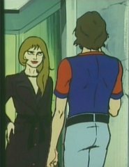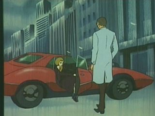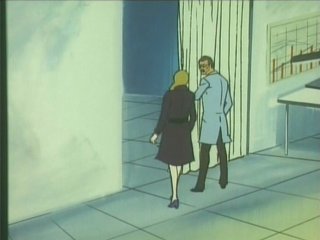 Surprise! This screenshot is obviously edited; of the Gatchaman five, Joe had the least opportunity to come face to face with the Onna Taicho. Everyone saw "Anderson's secretary" (ep 31) except Joe, who had run off to sulk. Only Jun and Jinpei saw the Galactor captain in the Gezora eps. The pretty secretary of the "Sugare" company (ep 69), if that was indeed Katze in female form, was seen only by Jinpei and Ryu. Joe had a glimpse of a strange woman hitting the girl he'd just given a lift (and it was dislike at first sight) but apart from that, all he'd seen of the female Katze prior to this ep was the photograph of ep 88.